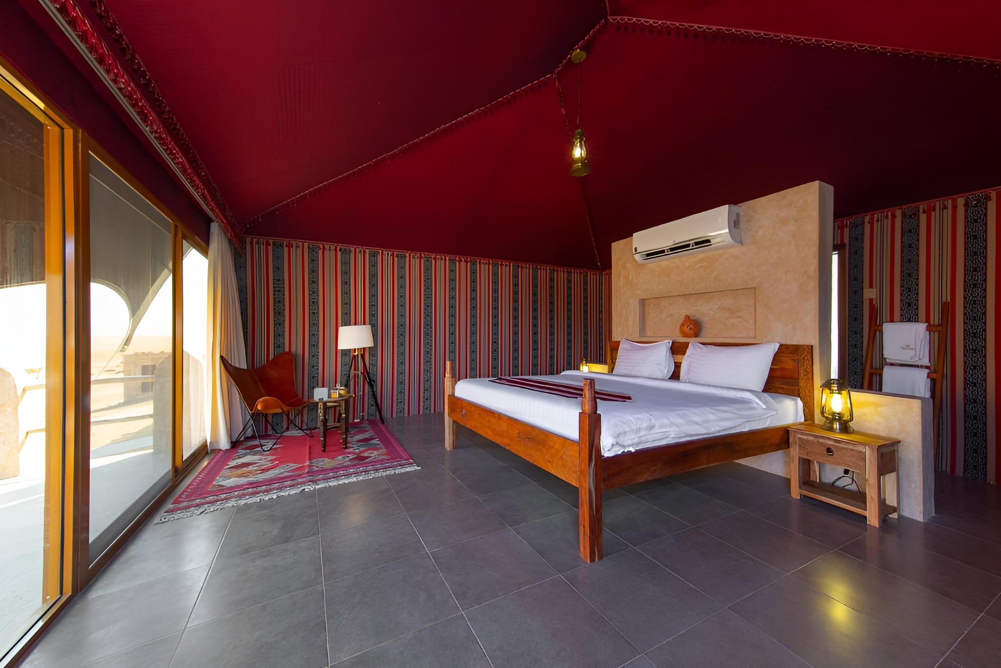 Уютный шатер с террасой с одной двуспальной кроватью. Оснащен кондиционером, мини-баром, чайными принадлежностями и душем на открытом воздухе. Все шатры оборудованы электрическими розетками.