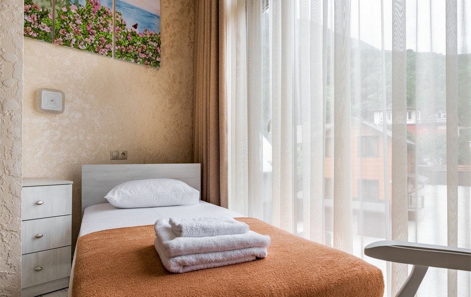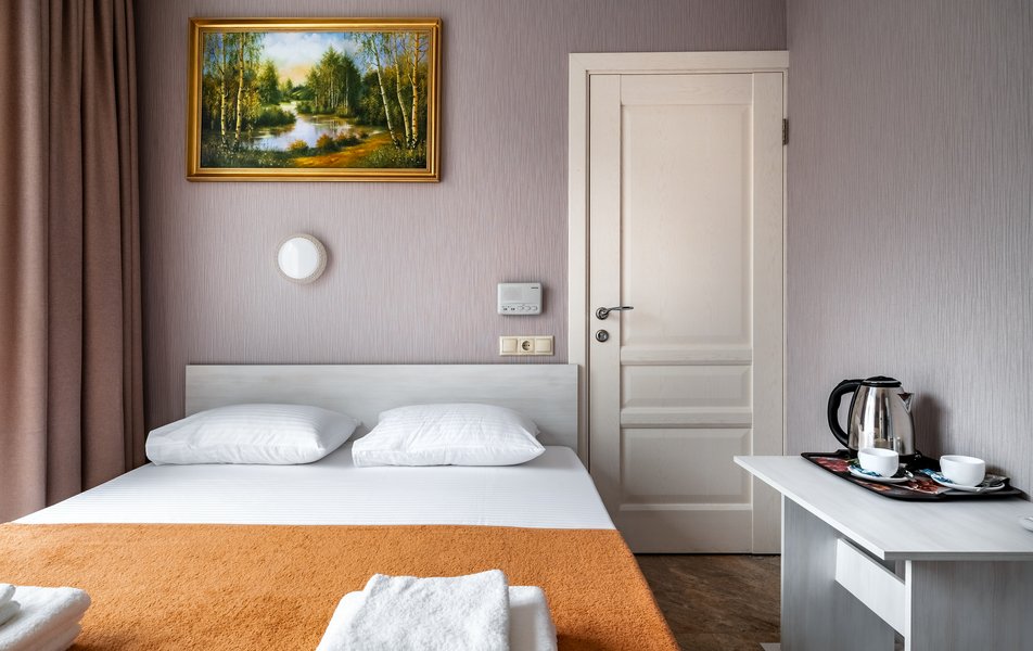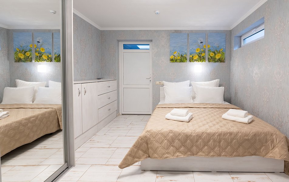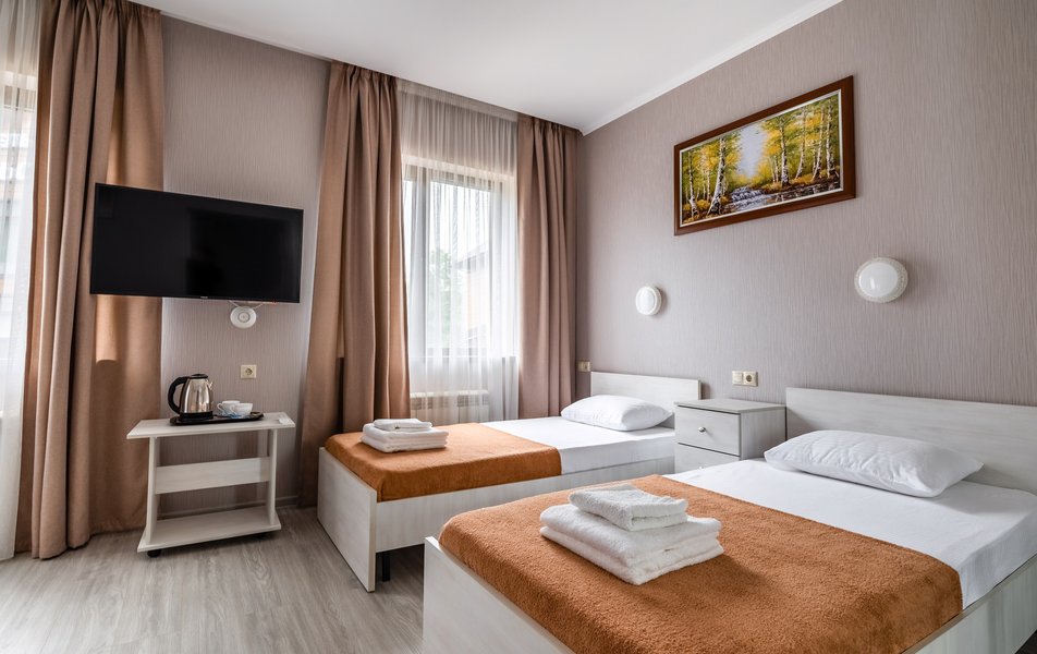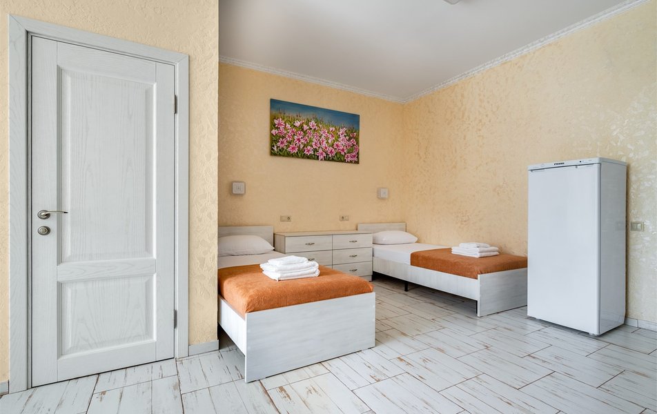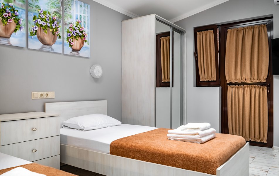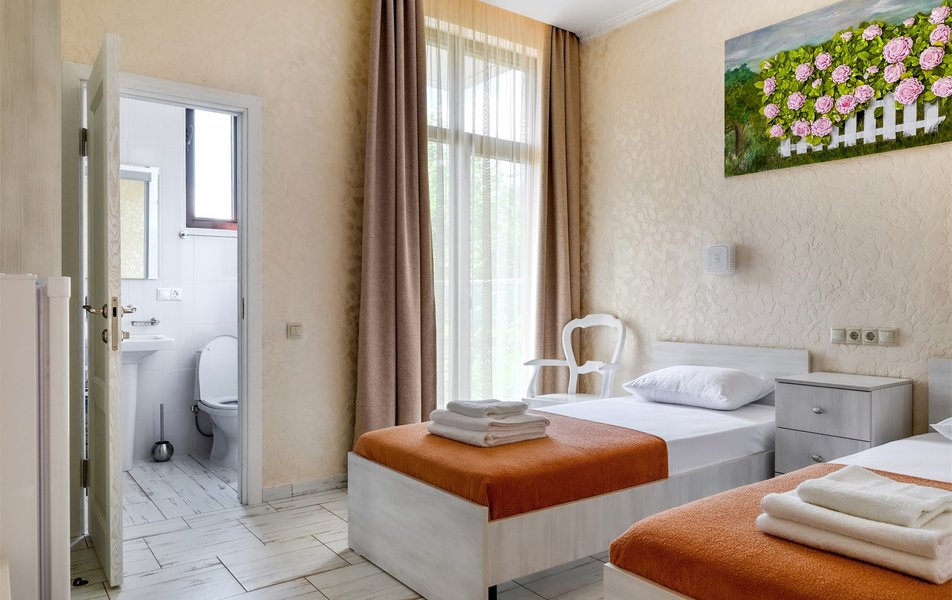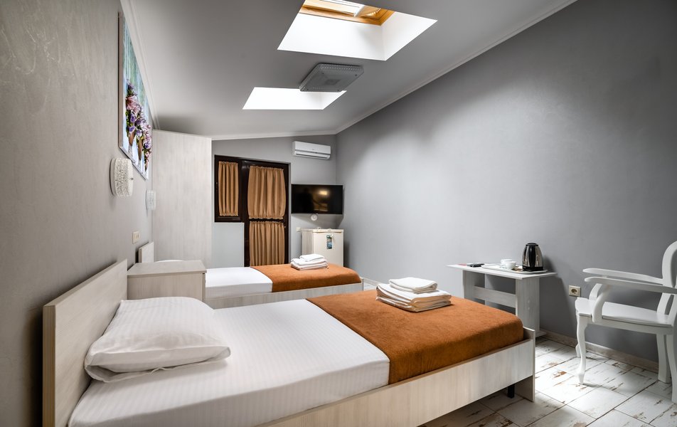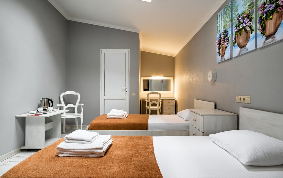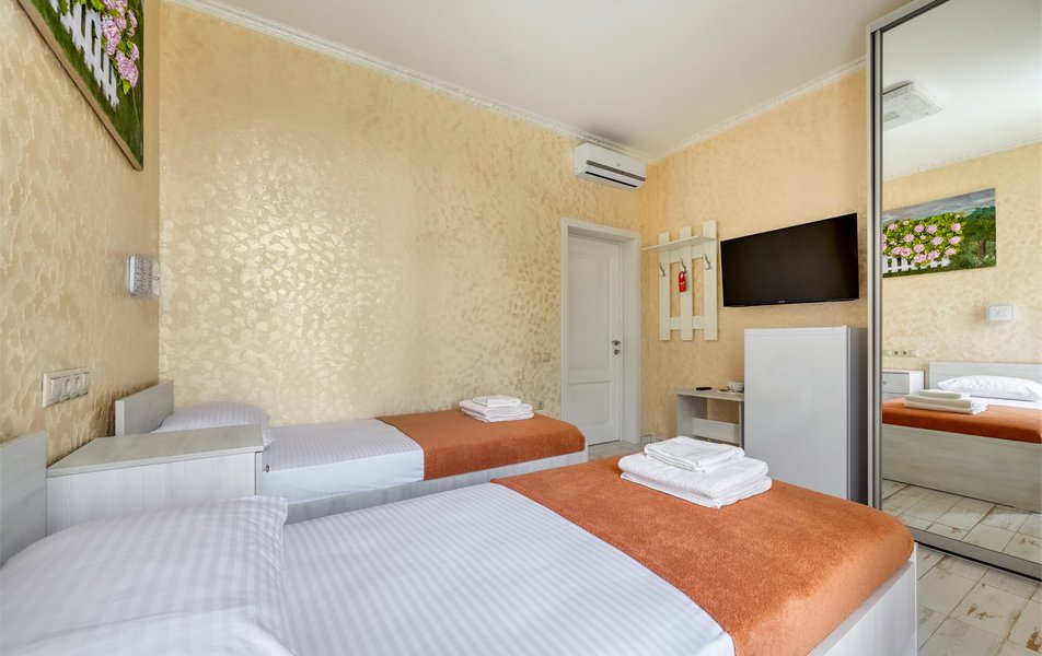 Бюджетный 2-местный (без окна) Количество комнат: 1-комнатный Тип номера: Стандартный Вид из номера: без окна Кол-во номеров: 1 Кол-во основных мест: 2 Площадь (кв. м): 15 Мебель: зеркало, кровати полутороспальные, прикроватная тумбочка, стол, стулья, шкаф Оборудование: кондиционер, телевизор ЖК, утюг, холодильник, чайный набор посуды, электрочайник Санузел: тапочки, туалетные принадлежности, фен Сервис: Wi-Fi бесплатно, смена полотенец: 1 раз в 3 дня, смена постельного белья: 1 раз в 3 дня, уборка номера: ежедневно
