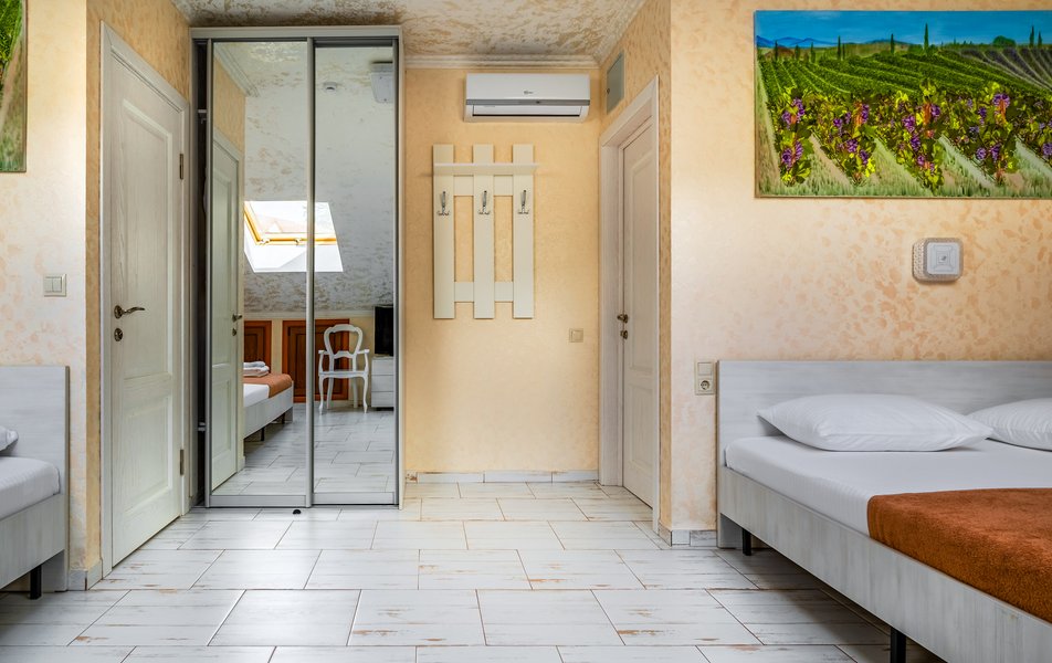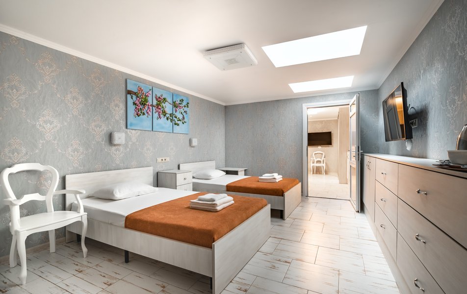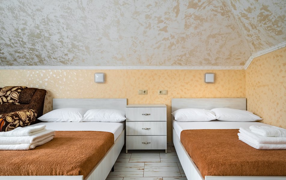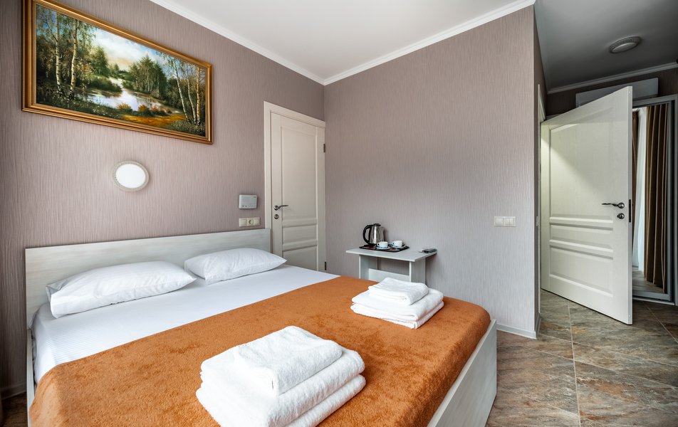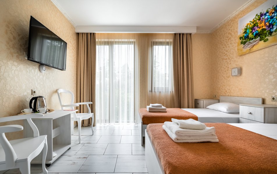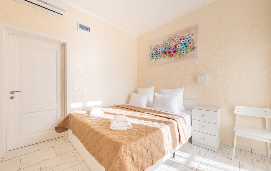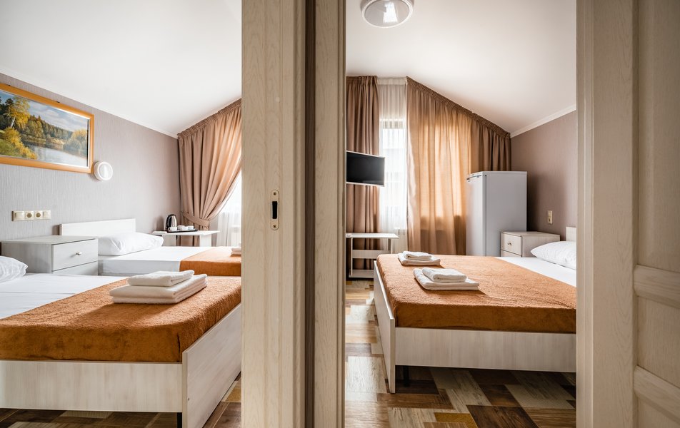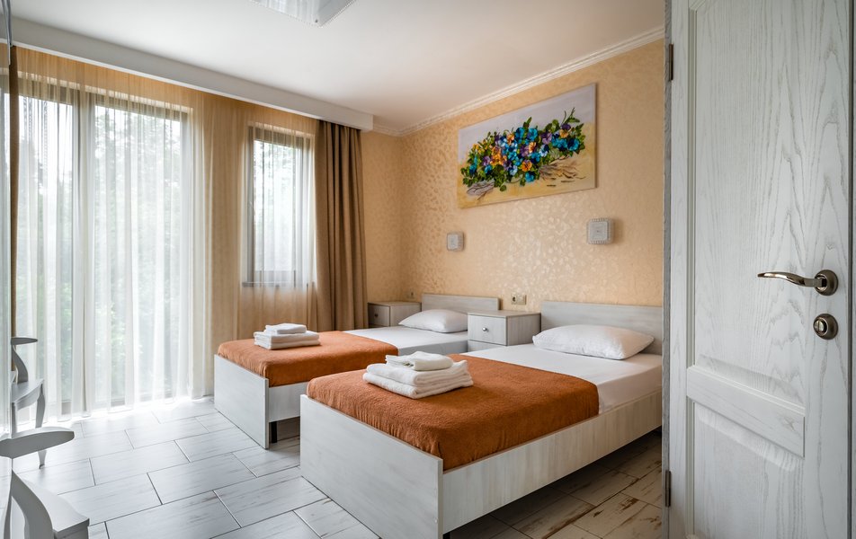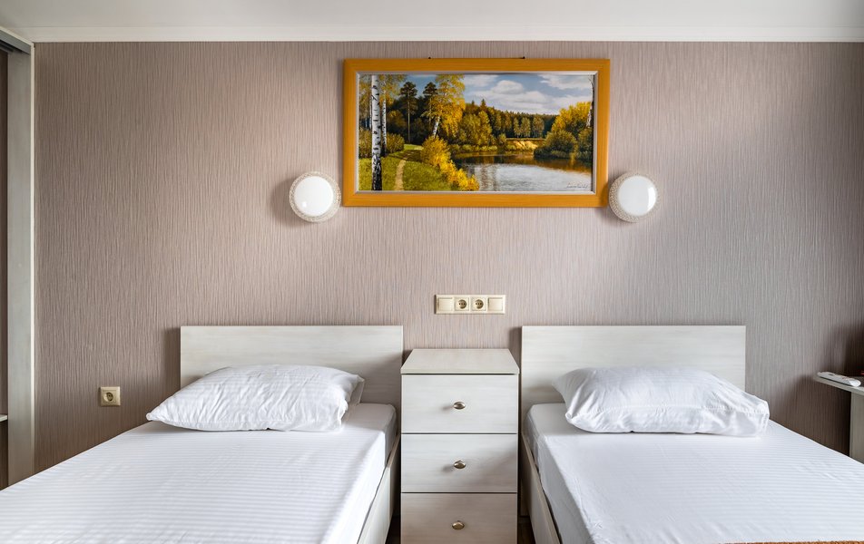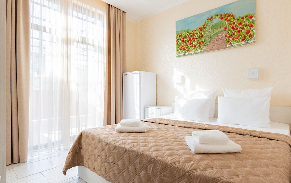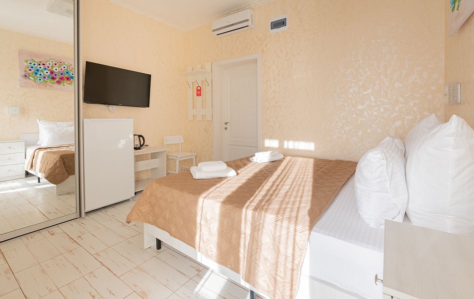 Бюджетный 2-местный (без окна) Количество комнат: 1-комнатный Тип номера: Стандартный Вид из номера: без окна Кол-во номеров: 1 Кол-во основных мест: 2 Площадь (кв. м): 15 Мебель: зеркало, кровати полутороспальные, прикроватная тумбочка, стол, стулья, шкаф Оборудование: кондиционер, телевизор ЖК, утюг, холодильник, чайный набор посуды, электрочайник Санузел: тапочки, туалетные принадлежности, фен Сервис: Wi-Fi бесплатно, смена полотенец: 1 раз в 3 дня, смена постельного белья: 1 раз в 3 дня, уборка номера: ежедневно