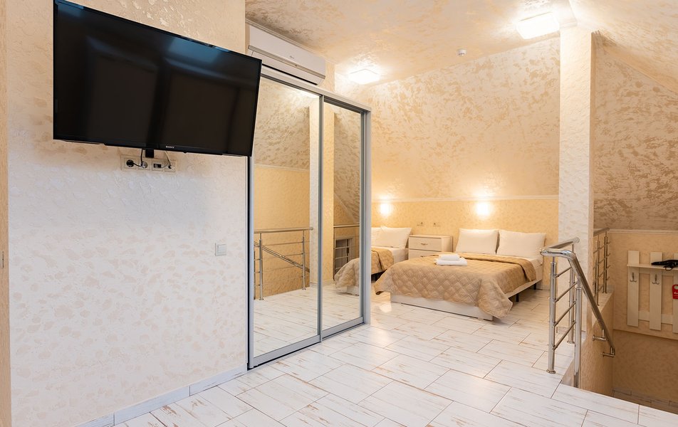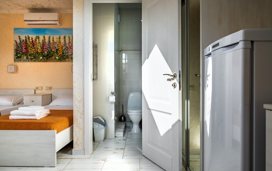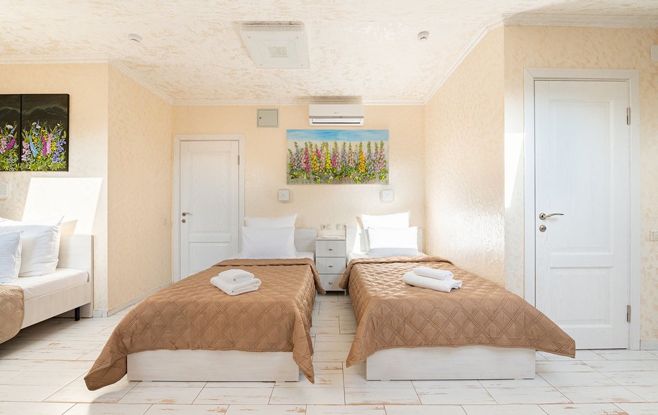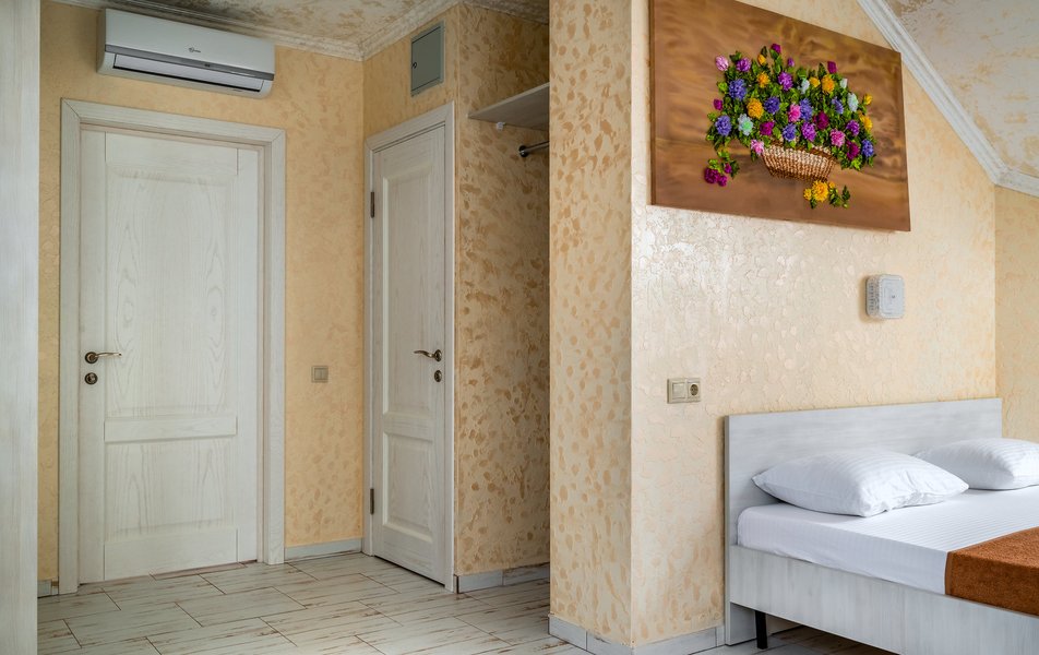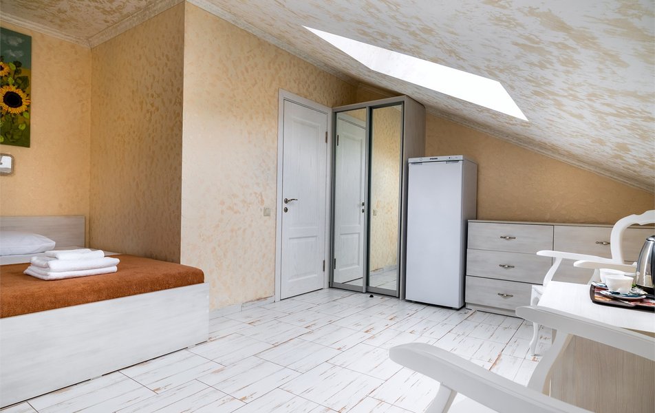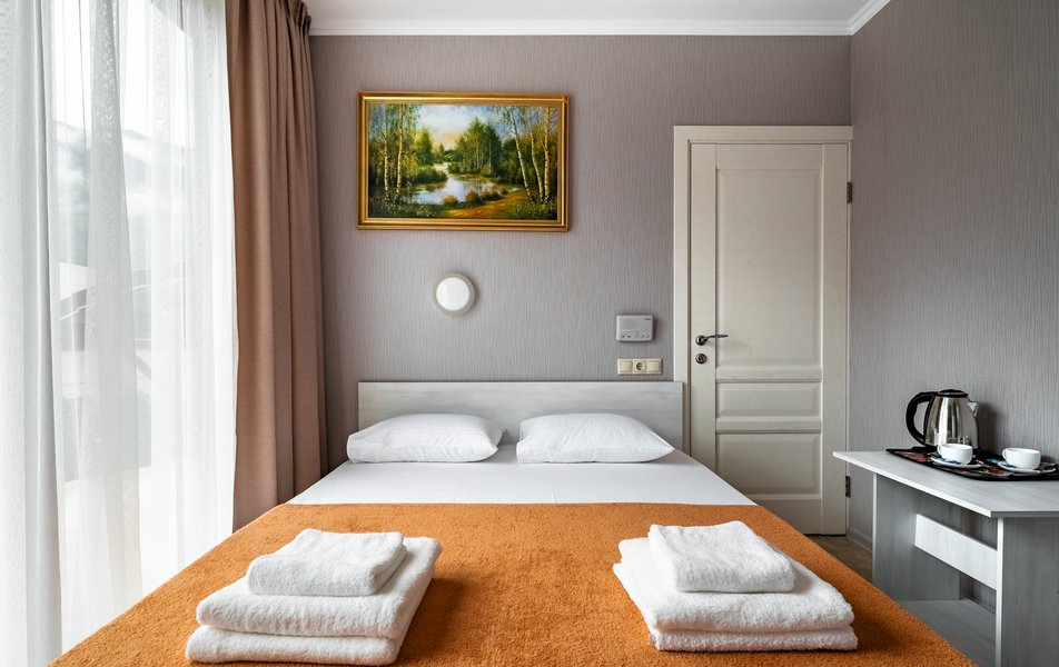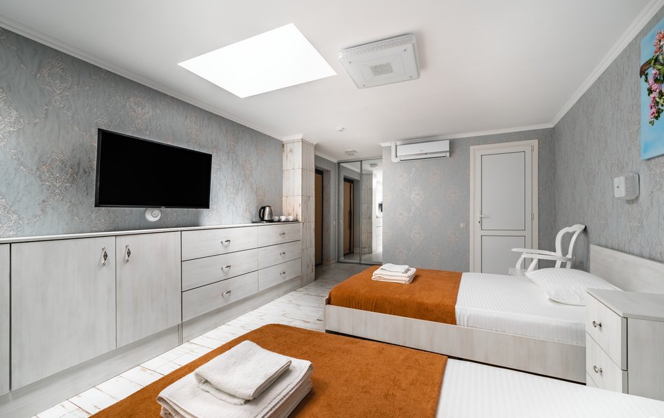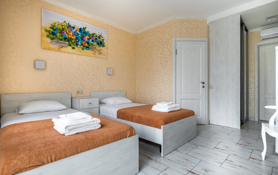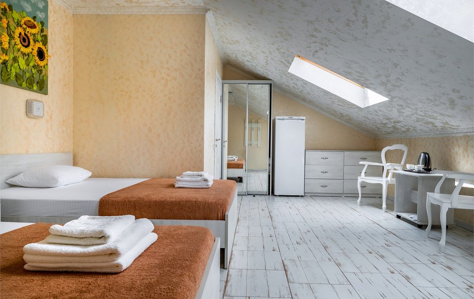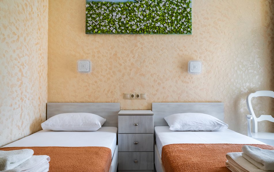 Бюджетный 2-местный (без окна) Количество комнат: 1-комнатный Тип номера: Стандартный Вид из номера: без окна Кол-во номеров: 1 Кол-во основных мест: 2 Площадь (кв. м): 15 Мебель: зеркало, кровати полутороспальные, прикроватная тумбочка, стол, стулья, шкаф Оборудование: кондиционер, телевизор ЖК, утюг, холодильник, чайный набор посуды, электрочайник Санузел: тапочки, туалетные принадлежности, фен Сервис: Wi-Fi бесплатно, смена полотенец: 1 раз в 3 дня, смена постельного белья: 1 раз в 3 дня, уборка номера: ежедневно