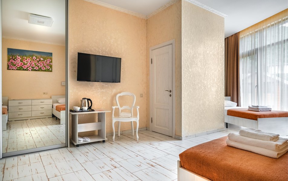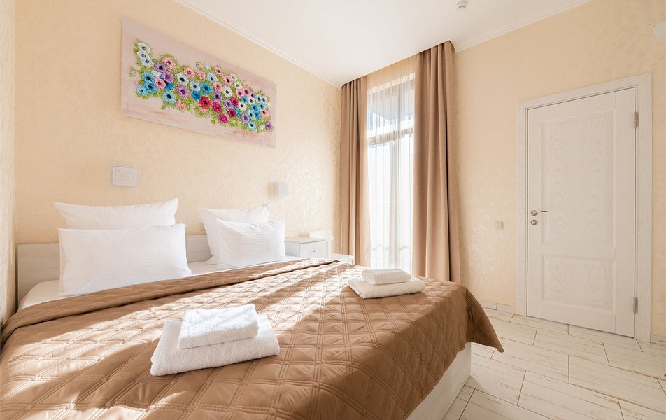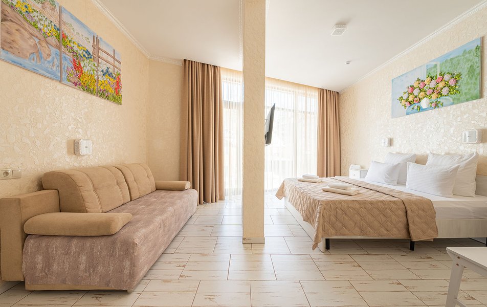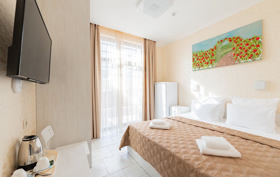 Делюкс 2-местный (с патио) Количество комнат: 1-комнатный Тип номера: Делюкс Кол-во номеров: 1 Кол-во основных мест: 2 Площадь (кв. м): 20 Мебель: вешалка, зеркало, кровать двуспальная, стол, стул, шкаф Оборудование: кондиционер, телевизор ЖК, утюг, чайный набор посуды, электрочайник Санузел: с душем, тапочки, туалетные принадлежности, фен Сервис: Wi-Fi бесплатно, смена полотенец: 1 раз в 3 дня, смена постельного белья: 1 раз в 3 дня, уборка номера: ежедневно