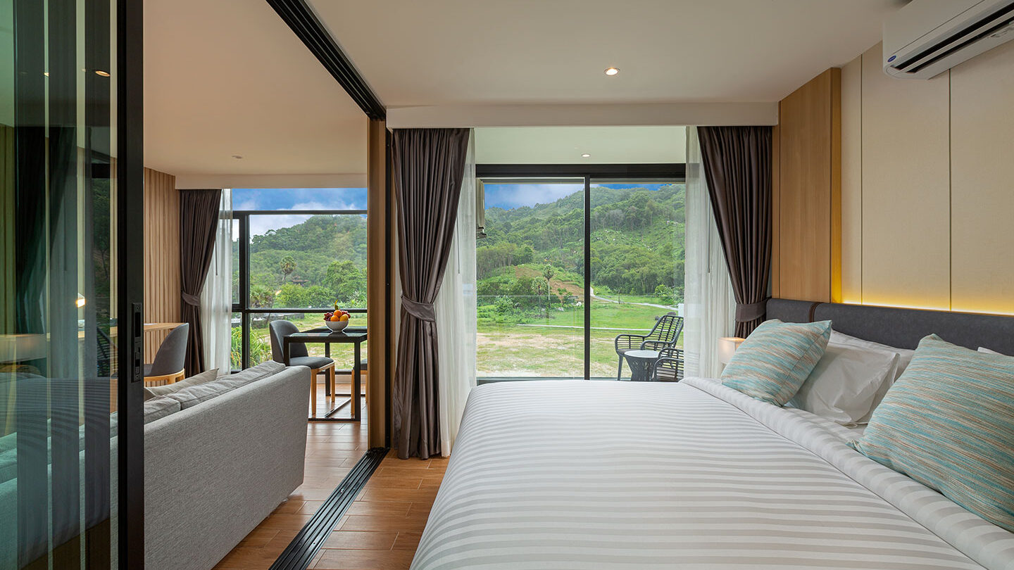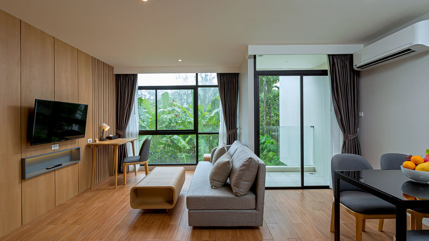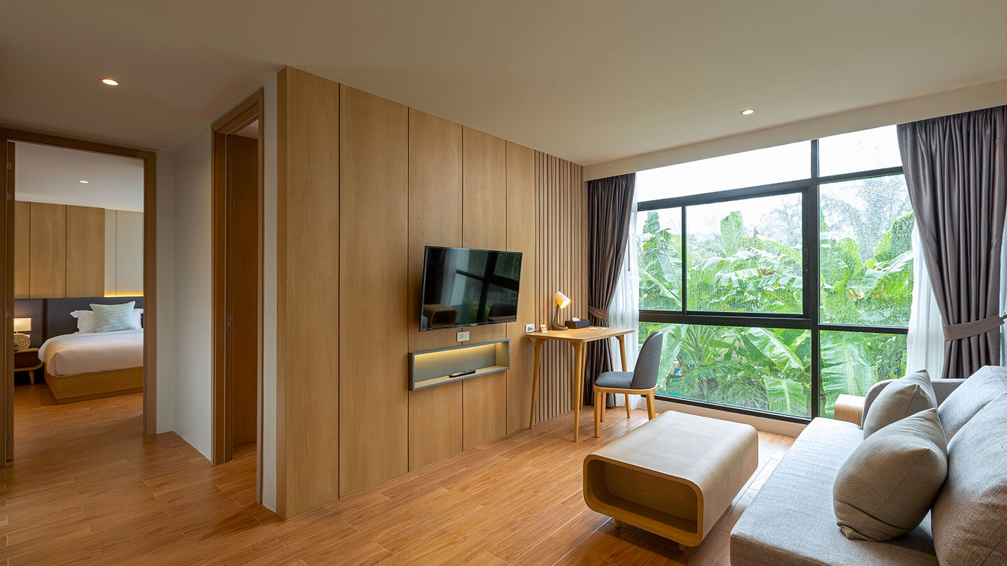 В комплектации номера Делюкс одна двуспальная или две односпальные кровати, гостиная зона с мягкой мебелью, ванная комната с тропическим душем, феном, халатами, тапочками. Среди удобств Wi-Fi, кондиционер, мини-бар, сейф, утюг и гладильная доска, зонт, телевизор, телефон, принадлежности для приготовления чая и кофе.