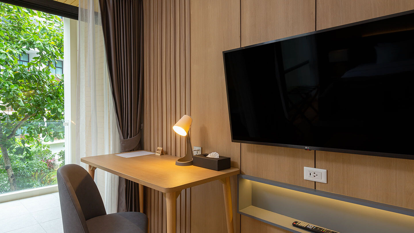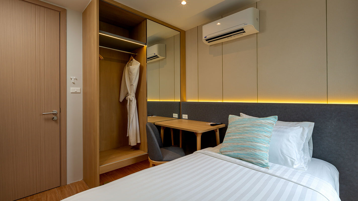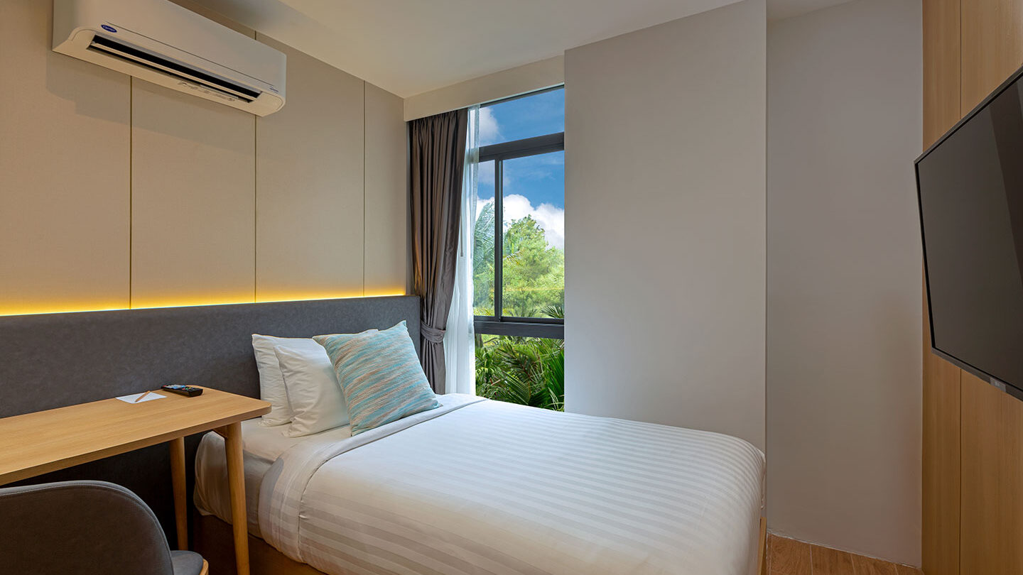 Комфортабельный номер с одной двуспальной или двумя односпальными кроватями, зоной отдыха, рабочим местом, собственным балконом, ванной комнатой с тропическим душем. Из удобств кондиционер, мини-бар, сейф, телевизор, утюг и гладильная доска, набор для приготовления чая и кофе, фен, набор гостиничной косметики, халаты, тапочки, зонт.